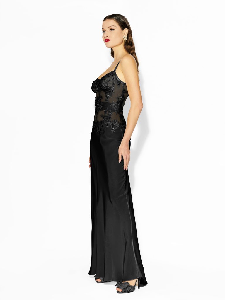 The golden hour is touched by magic, a magic that exists in the ‘Danielle’ robe. The sun is an extravert and as extravagant as nature intended; challenge that frivolity with this incredible Rosamosario robe. Crafted from Italy’s finest silk satin organza and masterfully fashioned into a true piece of art. The ostentatious ruffle sleeves are a glorious statement and they sit perfectly on the cascading gold organza falling gracefully upon create luxurious robe fit and feel.