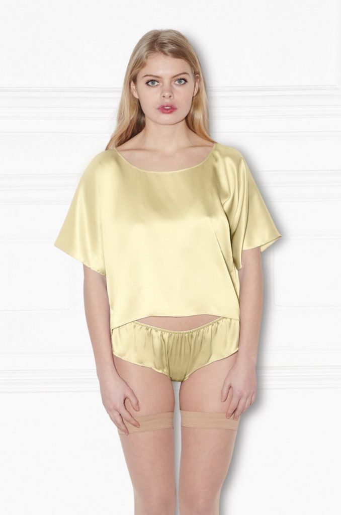 Statement boxers, perfect for a homely, luxe style. Tailored in Italian yellow silk satin, the gorgeous boxers flaunt smooth on the body. Match them with the matching cropped shirt.