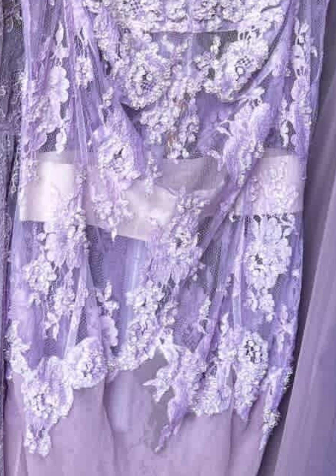 Let your inner couture dreams come to life in Rosamosario’s one of a kind lilac hand-embellished long corseted alike dress! Custom made to the queen Madonna,  this immaculately and luxurious corset alike dress, tailored bodice is embraced by the romantic embellishment with lace details. The back tie-up closure creates just the right hint of seduction and timeless elegance. Let’s go to the moon Queen Madonna ! This is the dress of the cover album of Confession II