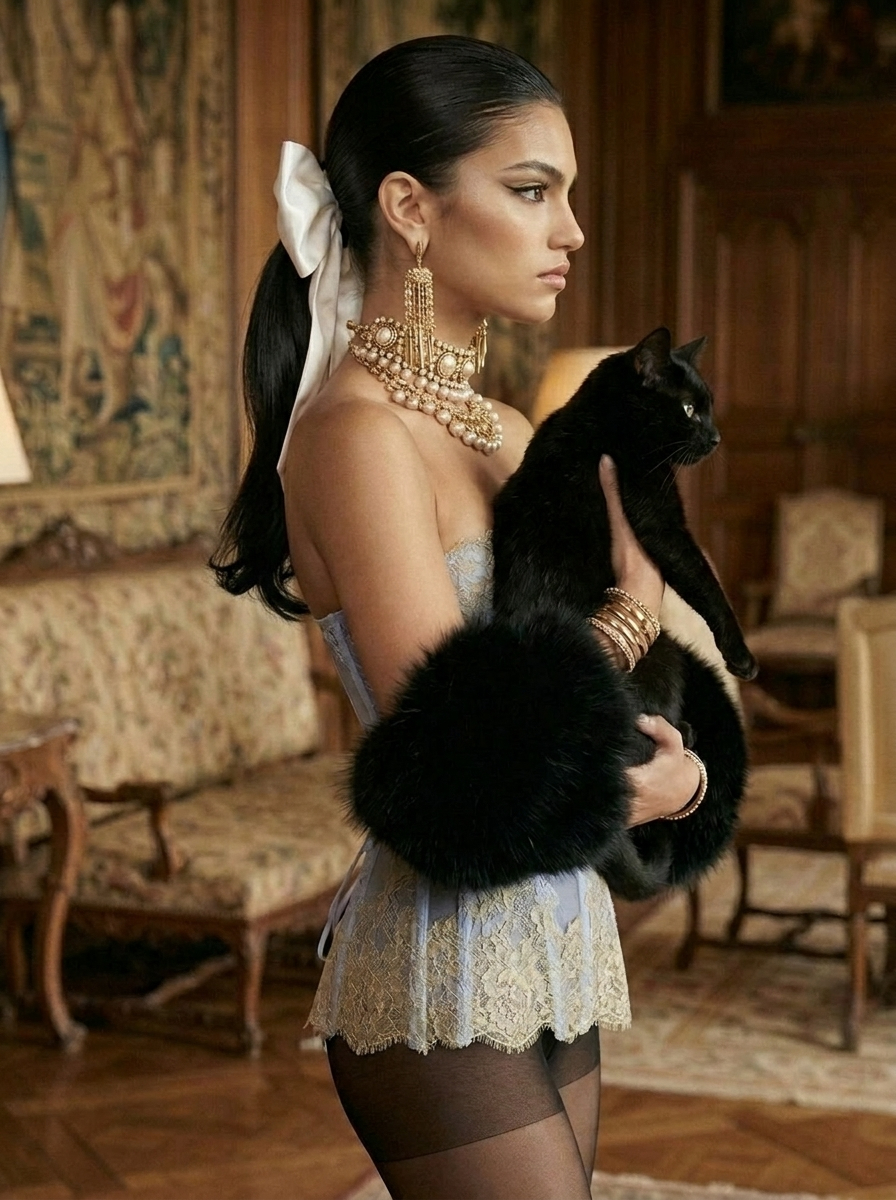 Rosamosario romantic and opulent strapless bustier that blends delicate craftsmanship with vintage-inspired glamour. The sheer powder blue mesh body is reinforced with vertical boning channels for structured support, while intricate floral appliqués adorn the front panel for a feminine, ethereal touch.